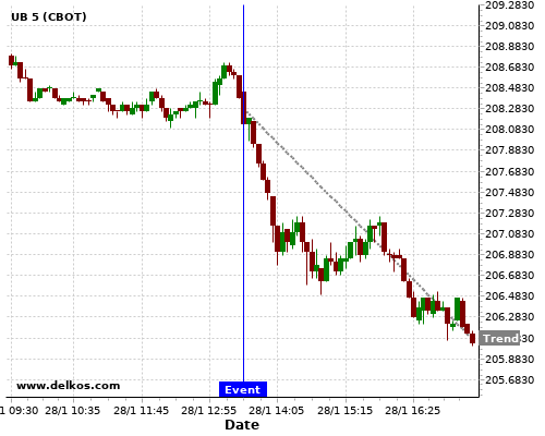 This probability is based on the last 12 US Continuing Jobless Claims events, in which 8 of the last 11 events where the actual number was less than than the economist consensus resulted in an down trend of UB.