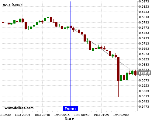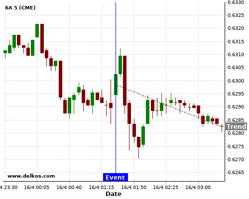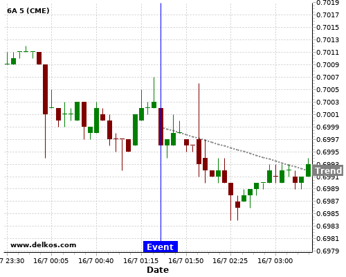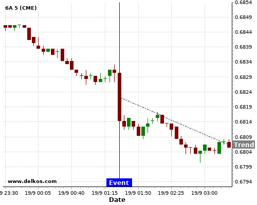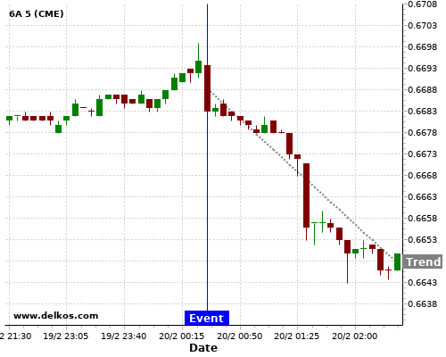This probability is based on the last 12 AU Employment Change events, in which 5 of the last 8 events where the actual number was greater than than the economist consensus resulted in an down trend of 6A.