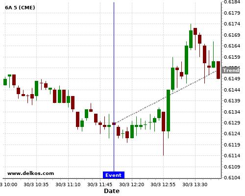 This probability is based on the last 12 DE Inflation Rate YoY Prel events, in which 3 of the last 4 events where the actual number was equal to than the economist consensus resulted in an up trend of 6A.