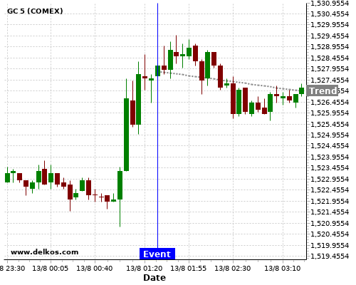 This probability is based on the last 12 AU NAB Business Confidence events, in which 3 of the last 4 events where the actual number was greater than than the economist consensus resulted in an down trend of GC.