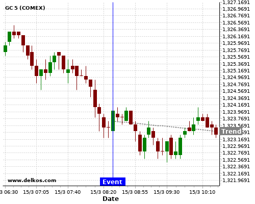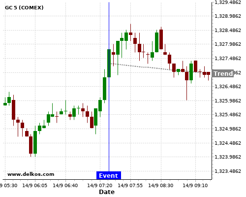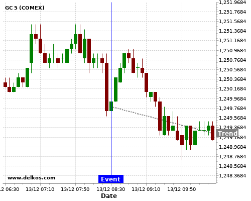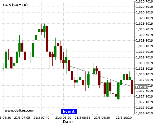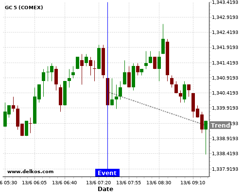 This probability is based on the last 12 CH SNB Interest Rate Decison events, in which 9 of the last 12 events where the actual number was equal to than the economist consensus resulted in an down trend of GC.
