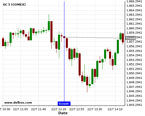 This probability is based on the last 12 CA Inflation Rate YoY events, in which 3 of the last 4 events where the actual number was greater than than the economist consensus resulted in an down trend of GC.