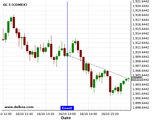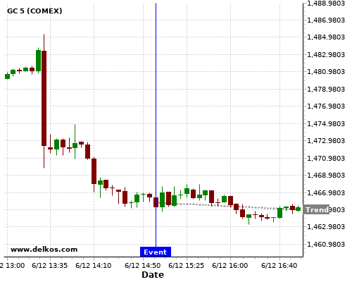This probability is based on the last 12 US Michigan Consumer Sentiment Prel events, in which 6 of the last 8 events where the actual number was greater than than the economist consensus resulted in an down trend of GC.