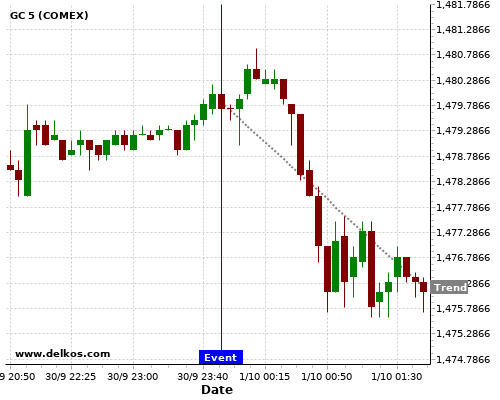 This probability is based on the last 12 JP Tankan Large Manufacturers Index events, in which 3 of the last 4 events where the actual number was greater than than the economist consensus resulted in an down trend of GC.