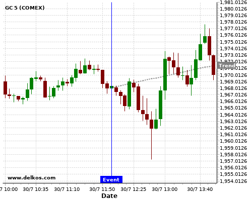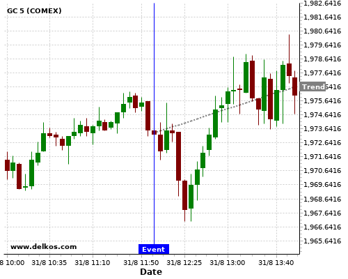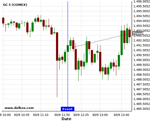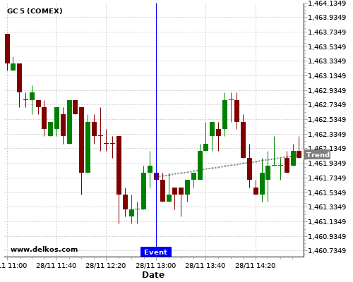 This probability is based on the last 12 DE Inflation Rate YoY Prel events, in which 4 of the last 4 events where the actual number was less than than the economist consensus resulted in an up trend of GC.