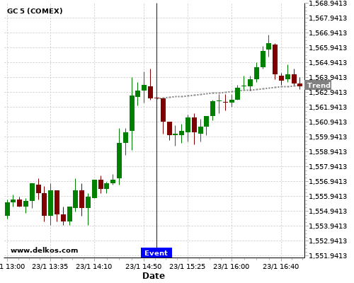 This probability is based on the last 12 EMU Consumer Confidence Flash events, in which 3 of the last 4 events where the actual number was less than than the economist consensus resulted in an up trend of GC.
