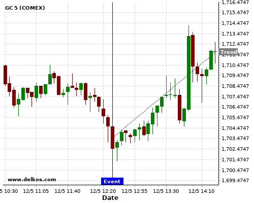This probability is based on the last 12 US Inflation Rate YoY events, in which 3 of the last 4 events where the actual number was less than than the economist consensus resulted in an up trend of GC.