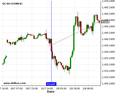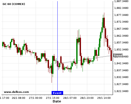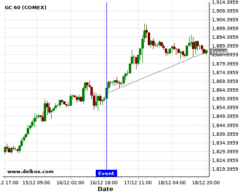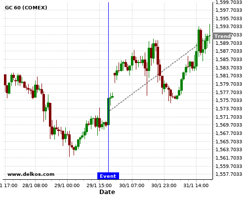 This probability is based on the last 12 US Fed Interest Rate Decision events, in which 9 of the last 12 events where the actual number was equal to than the economist consensus resulted in an up trend of GC.