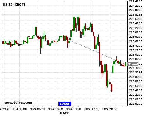 This probability is based on the last 12 EMU ECB Interest Rate Decision events, in which 9 of the last 12 events where the actual number was equal to than the economist consensus resulted in an down trend of UB.