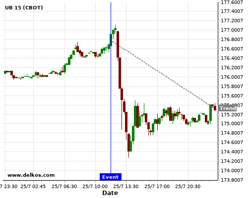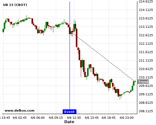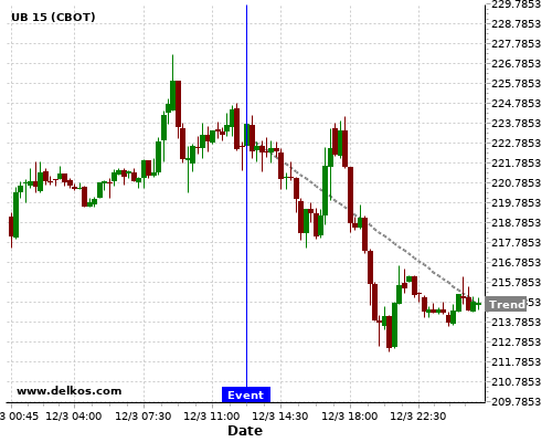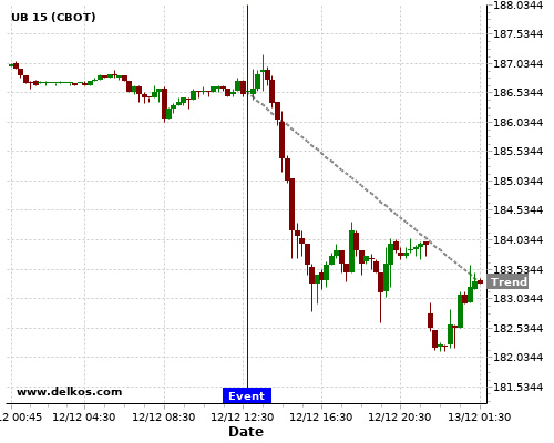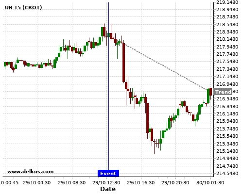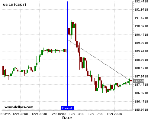 This probability is based on the last 12 EMU ECB Interest Rate Decision events, in which 9 of the last 12 events where the actual number was equal to than the economist consensus resulted in an down trend of UB.