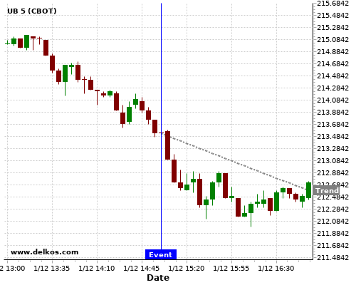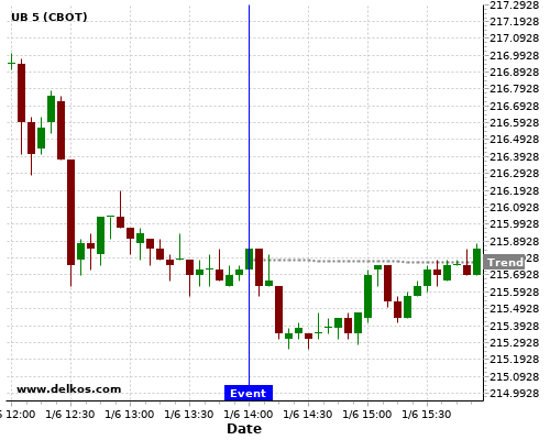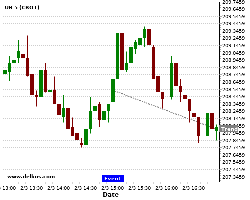 This probability is based on the last 12 US ISM Manufacturing PMI events, in which 3 of the last 4 events where the actual number was less than than the economist consensus resulted in an down trend of UB.