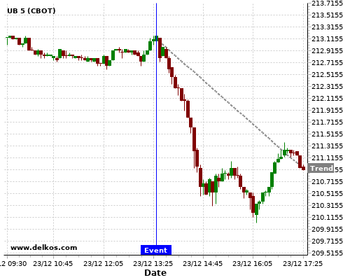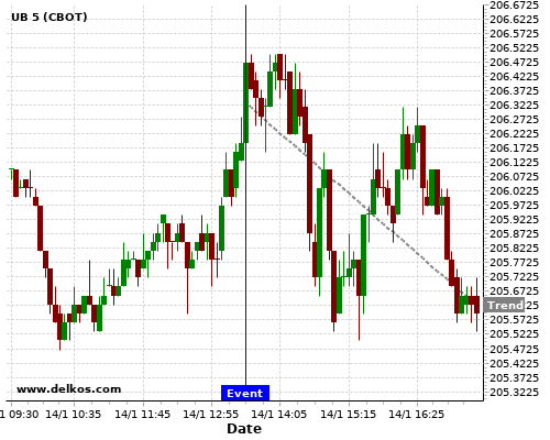 This probability is based on the last 12 US Continuing Jobless Claims events, in which 9 of the last 12 events where the actual number was less than than the economist consensus resulted in an down trend of UB.