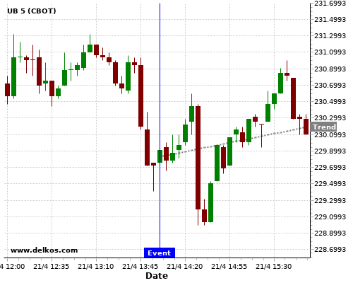 This probability is based on the last 12 US Existing Home Sales events, in which 3 of the last 4 events where the actual number was less than than the economist consensus resulted in an up trend of UB.