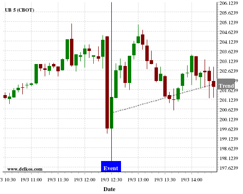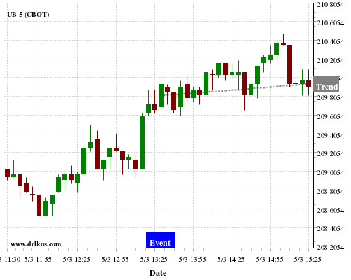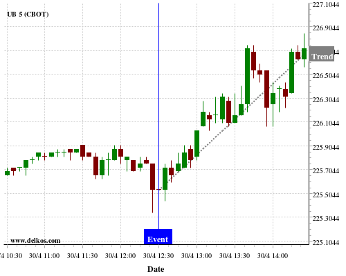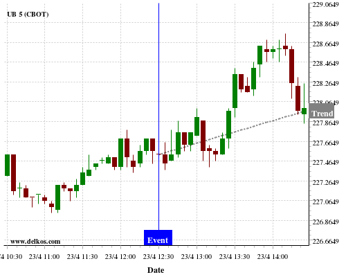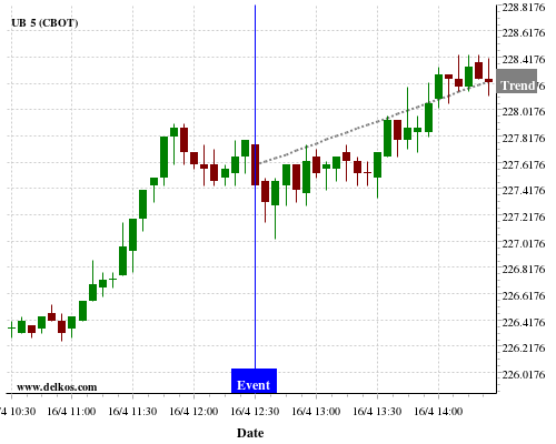 This probability is based on the last 12 US Continuing Jobless Claims events, in which 6 of the last 8 events where the actual number was less than than the economist consensus resulted in an up trend of UB.