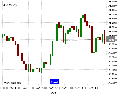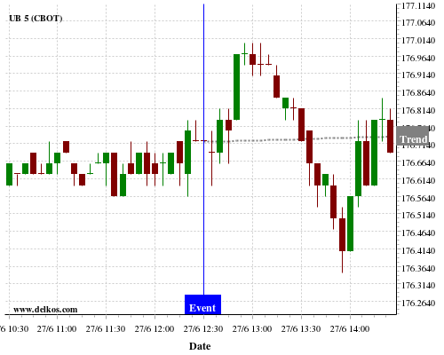 This probability is based on the last 12 US GDP Growth Rate QoQ Final events, in which 3 of the last 4 events where the actual number was equal to than the economist consensus resulted in an up trend of UB.
