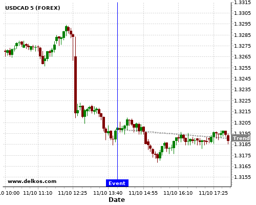 This probability is based on the last 12 US Michigan Consumer Sentiment Prel events, in which 2 of the last 8 events where the actual number was greater than than the economist consensus resulted in an down trend of USDCAD.