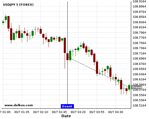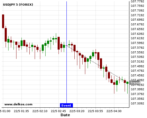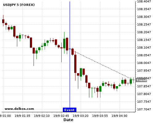 This probability is based on the last 12 JP BoJ Interest Rate Decision events, in which 6 of the last 12 events where the actual number was equal to than the economist consensus resulted in an down trend of USDJPY.
