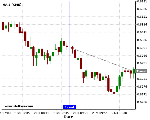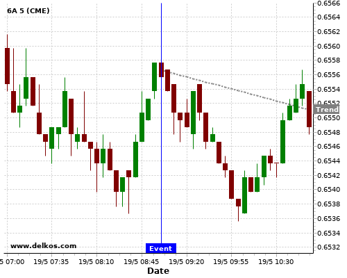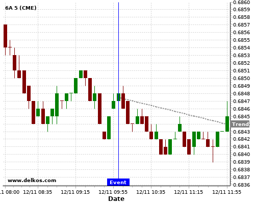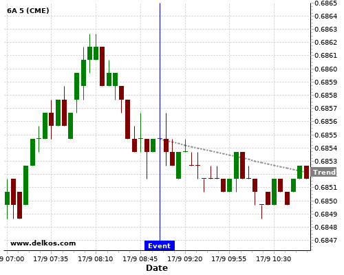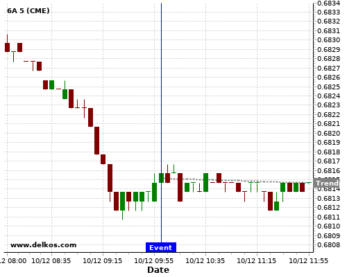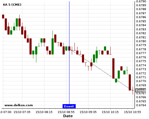 This probability is based on the last 12 DE ZEW Economic Sentiment Index events, in which 6 of the last 9 events where the actual number was greater than than the economist consensus resulted in an down trend of 6A.