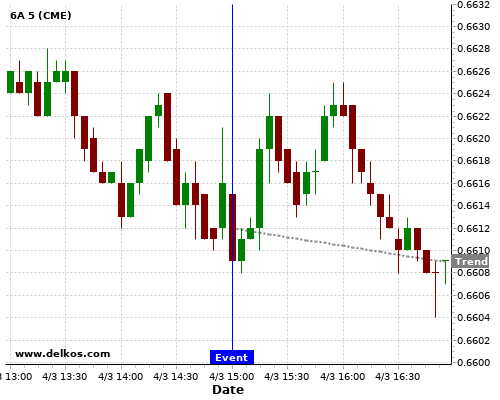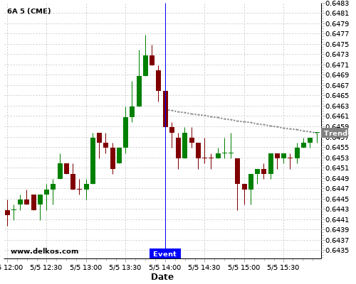 This probability is based on the last 12 US ISM Non-Manufacturing PMI events, in which 7 of the last 9 events where the actual number was greater than than the economist consensus resulted in an down trend of 6A.