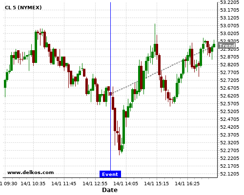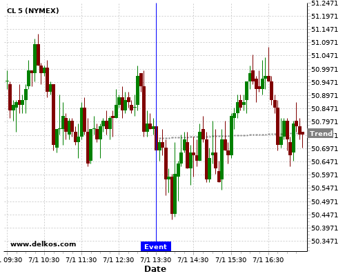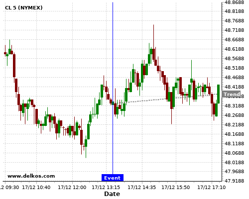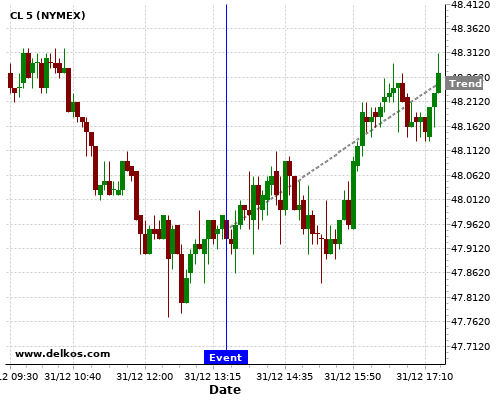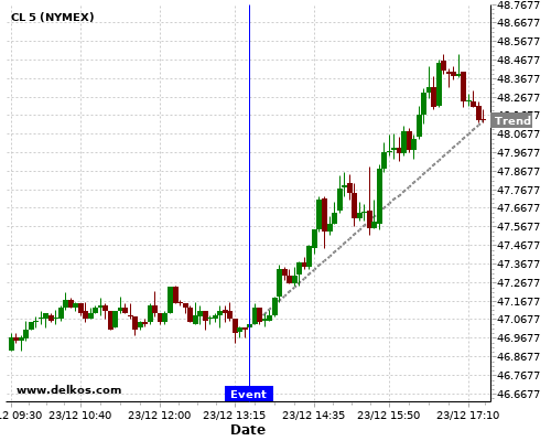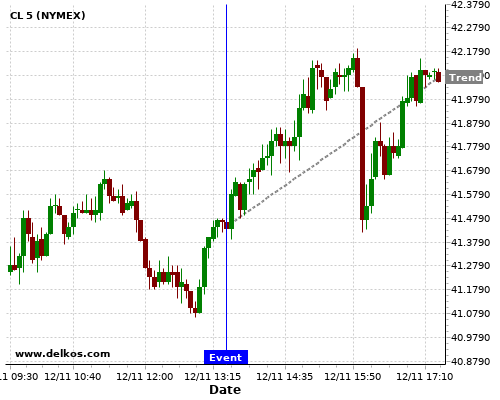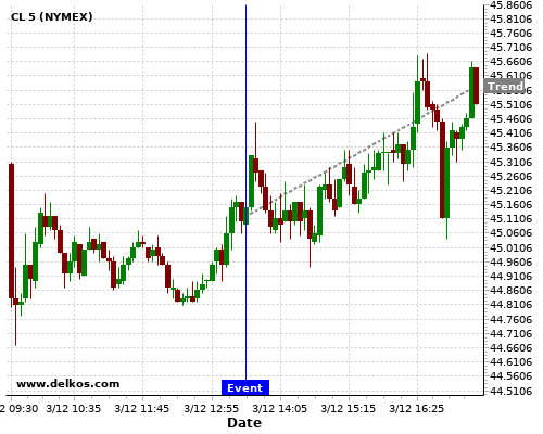 This probability is based on the last 12 US Continuing Jobless Claims events, in which 7 of the last 9 events where the actual number was less than than the economist consensus resulted in an up trend of CL.