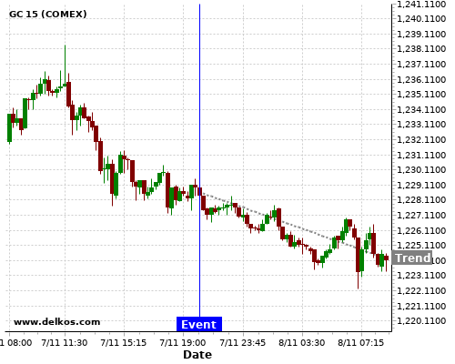 This probability is based on the last 12 NZ Interest Rate Decision events, in which 7 of the last 9 events where the actual number was equal to than the economist consensus resulted in an down trend of GC.