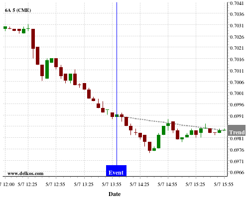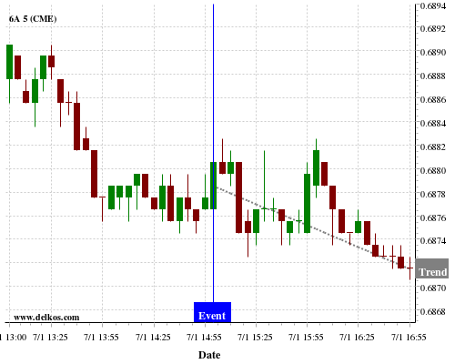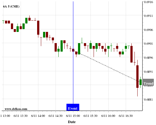 This probability is based on the last 12 CA Ivey PMI s.a events, in which 4 of the last 5 events where the actual number was less than than the economist consensus resulted in an down trend of 6A.