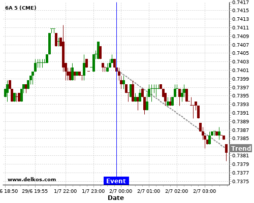 This probability is based on the last 12 JP Tankan Large Manufacturers Index events, in which 4 of the last 6 events where the actual number was less than than the economist consensus resulted in an down trend of 6A.