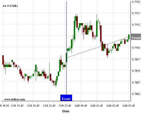 This probability is based on the last 12 JP GDP Growth Rate QoQ Prel events, in which 4 of the last 5 events where the actual number was greater than than the economist consensus resulted in an up trend of 6A.