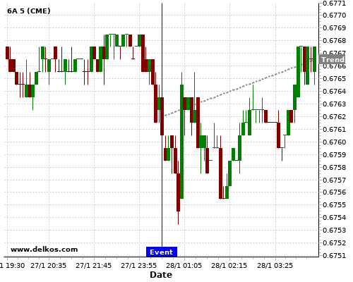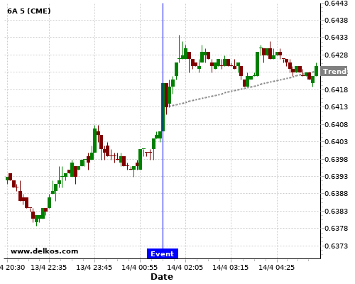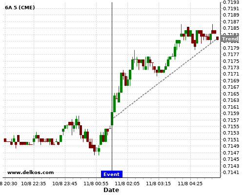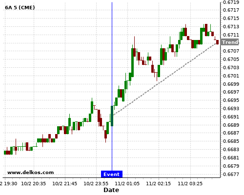 This probability is based on the last 12 AU NAB Business Confidence events, in which 4 of the last 5 events where the actual number was less than than the economist consensus resulted in an up trend of 6A.