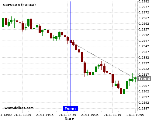 This probability is based on the last 12 US Existing Home Sales events, in which 4 of the last 5 events where the actual number was less than than the economist consensus resulted in an down trend of GBPUSD.