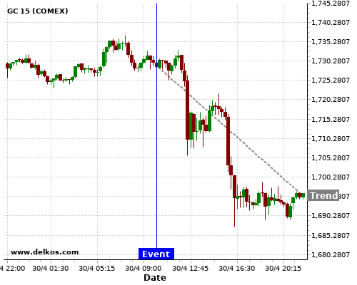 This probability is based on the last 12 IT GDP Growth Rate QoQ Adv events, in which 3 of the last 5 events where the actual number was greater than than the economist consensus resulted in an down trend of GC.