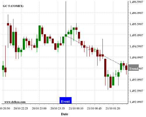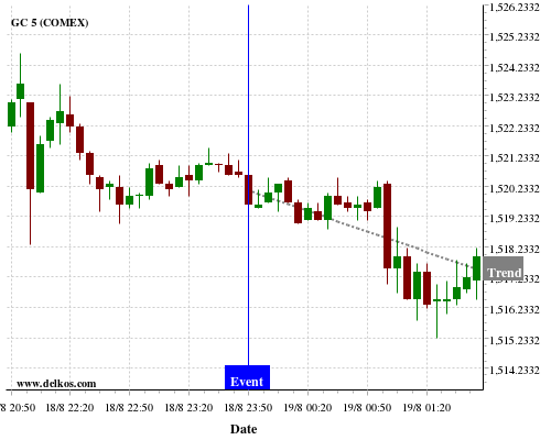 This probability is based on the last 12 JP Balance of Trade events, in which 4 of the last 5 events where the actual number was less than than the economist consensus resulted in an down trend of GC.