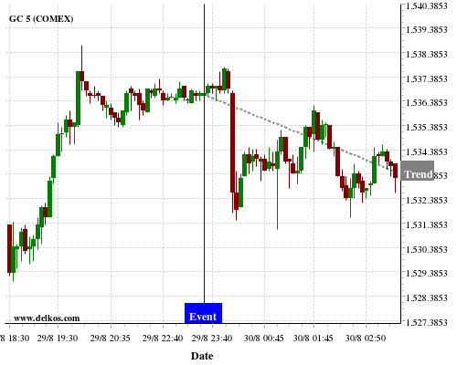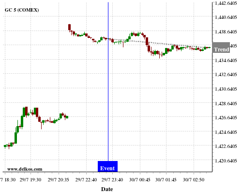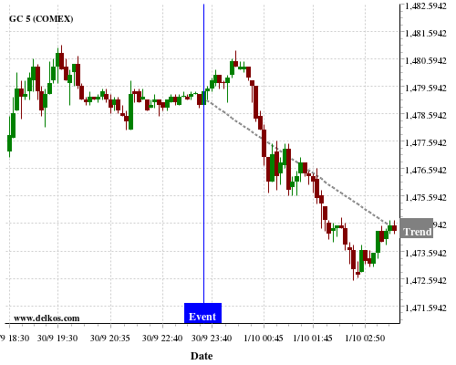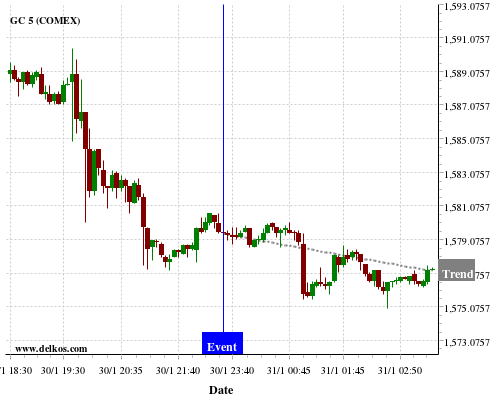 This probability is based on the last 12 JP Unemployment Rate events, in which 4 of the last 5 events where the actual number was less than than the economist consensus resulted in an down trend of GC.