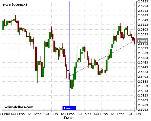 This probability is based on the last 12 CA Ivey PMI s.a events, in which 4 of the last 6 events where the actual number was greater than than the economist consensus resulted in an up trend of HG.