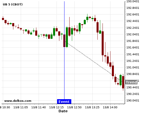 This probability is based on the last 12 US Inflation Rate YoY events, in which 2 of the last 5 events where the actual number was greater than than the economist consensus resulted in an down trend of UB.