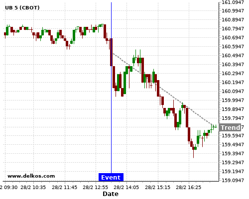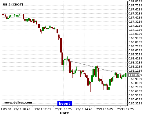 This probability is based on the last 12 US GDP Growth Rate QoQ 2nd Est events, in which 3 of the last 5 events where the actual number was greater than than the economist consensus resulted in an down trend of UB.