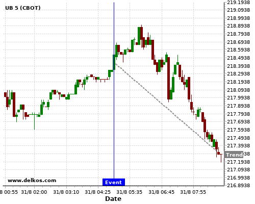 This probability is based on the last 12 JP Consumer Confidence events, in which 4 of the last 5 events where the actual number was greater than than the economist consensus resulted in an down trend of UB.