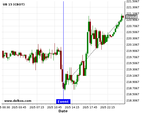 This probability is based on the last 12 CA Inflation Rate YoY events, in which 3 of the last 5 events where the actual number was less than than the economist consensus resulted in an up trend of UB.