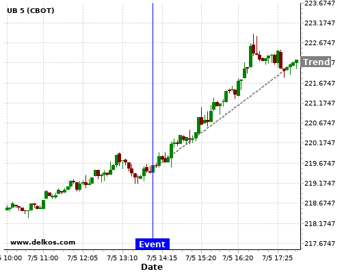 This probability is based on the last 12 CA Ivey PMI s.a events, in which 3 of the last 5 events where the actual number was less than than the economist consensus resulted in an up trend of UB.