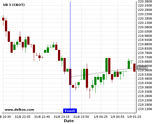 This probability is based on the last 12 JP Unemployment Rate events, in which 4 of the last 5 events where the actual number was less than than the economist consensus resulted in an up trend of UB.