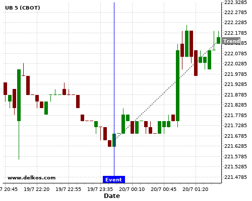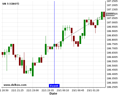This probability is based on the last 12 JP Balance of Trade events, in which 4 of the last 5 events where the actual number was less than than the economist consensus resulted in an up trend of UB.