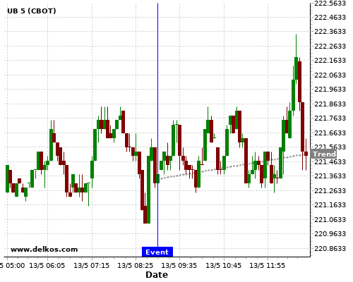 This probability is based on the last 12 EMU Industrial Production YoY events, in which 4 of the last 5 events where the actual number was less than than the economist consensus resulted in an up trend of UB.