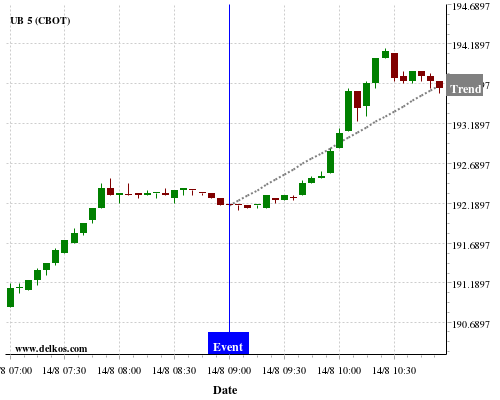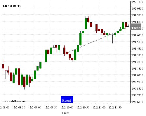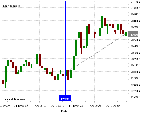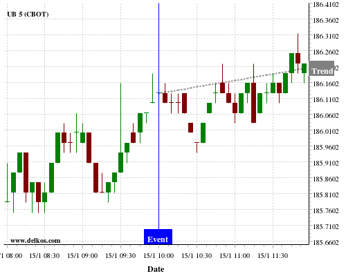 This probability is based on the last 12 EMU Industrial Production YoY events, in which 4 of the last 5 events where the actual number was less than than the economist consensus resulted in an up trend of UB.