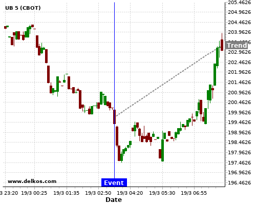 This probability is based on the last 12 AU RBA Interest Rate Decision events, in which 4 of the last 11 events where the actual number was equal to than the economist consensus resulted in an up trend of UB.