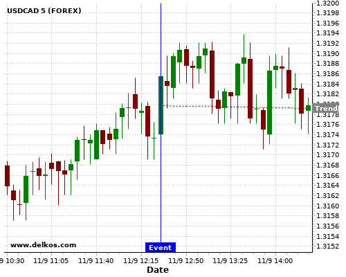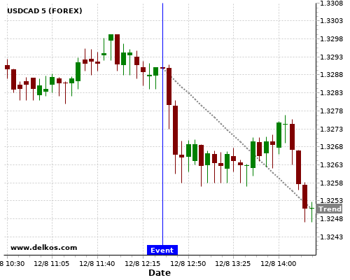 This probability is based on the last 12 US Inflation Rate YoY events, in which 4 of the last 5 events where the actual number was greater than than the economist consensus resulted in an down trend of USDCAD.