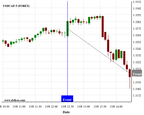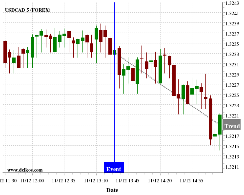 This probability is based on the last 12 US Inflation Rate YoY events, in which 4 of the last 5 events where the actual number was greater than than the economist consensus resulted in an down trend of USDCAD.