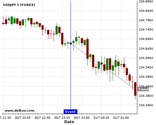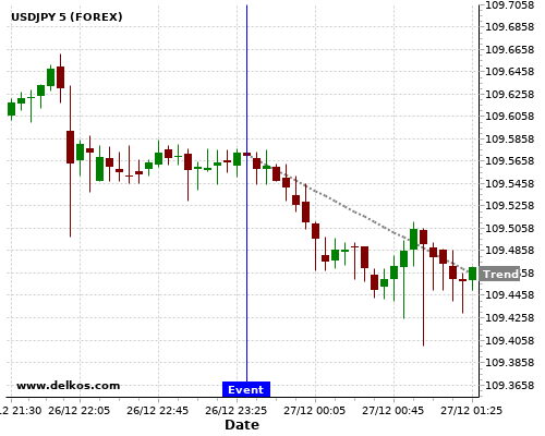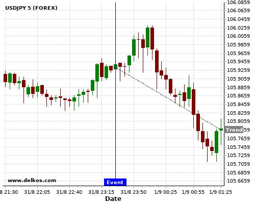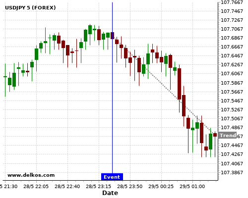 This probability is based on the last 12 JP Unemployment Rate events, in which 4 of the last 5 events where the actual number was less than than the economist consensus resulted in an down trend of USDJPY.