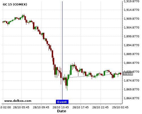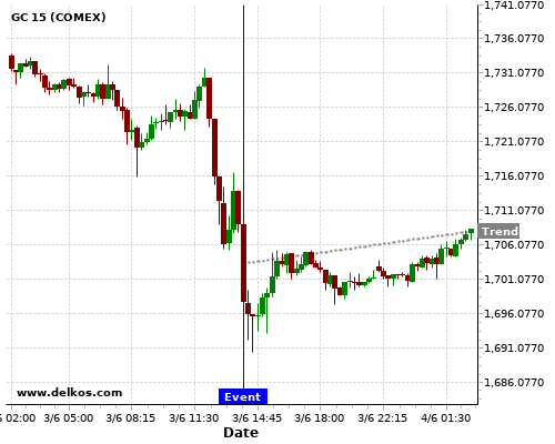 This probability is based on the last 12 CA BoC Interest Rate Decision events, in which 9 of the last 11 events where the actual number was equal to than the economist consensus resulted in an up trend of GC.