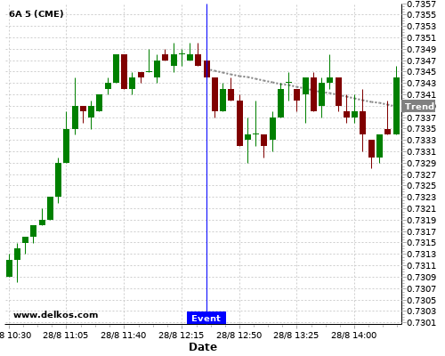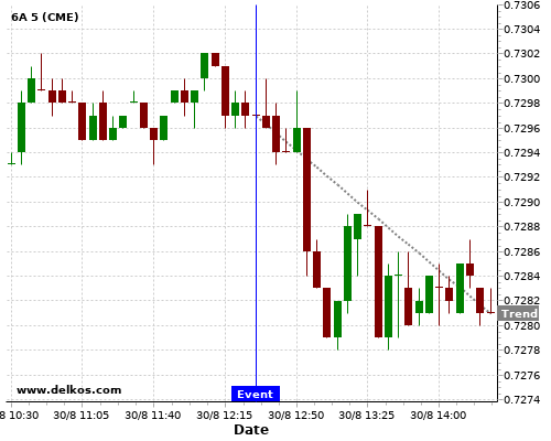 This probability is based on the last 12 CA GDP Growth Rate QoQ events, in which 5 of the last 6 events where the actual number was greater than than the economist consensus resulted in an down trend of 6A.