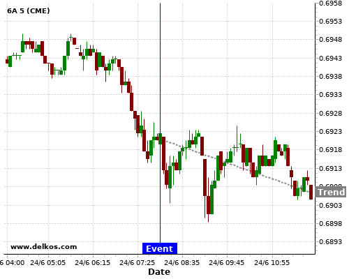 This probability is based on the last 12 DE Ifo Business Climate events, in which 2 of the last 6 events where the actual number was greater than than the economist consensus resulted in an down trend of 6A.